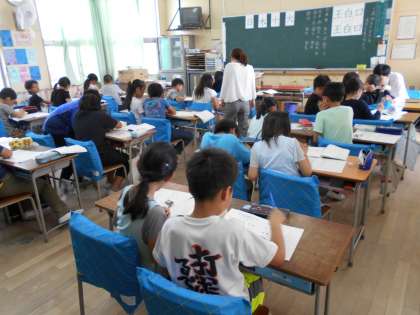 4年生は国語科の「一画増やしてできる漢字を探そう」の学習を行いました。漢字辞典を使って一画増やしてできる漢字を探しました。