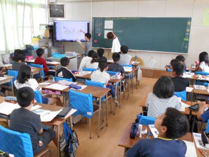 6年生は算数科の「円の面積」の学習を行いました。円の面積の応用で、多様な方法で円を含む複合図形の面積の求め方を考えました。