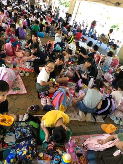 今日は暑かったので、お弁当は屋根の下で食べました。また、お家でたくさんのお話を聞いてあげてくださいね。