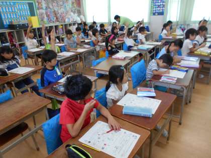 今日、2年生で栄養指導がありました。「たべもののはたらきをしろう」と題して、エネルギーのもとになる食べ物、体をつくるもとになる食べ物、調子を整える食べ物について学習しました。様々な食べ物を赤・黄・緑にグループ分けをしました。