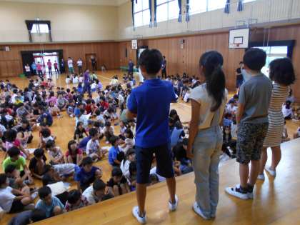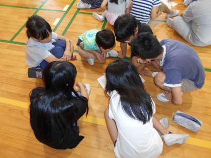 今朝はフレンド集会がありました。キャラクターあてクイズをして、2つのヒントからグループで相談して考えました。