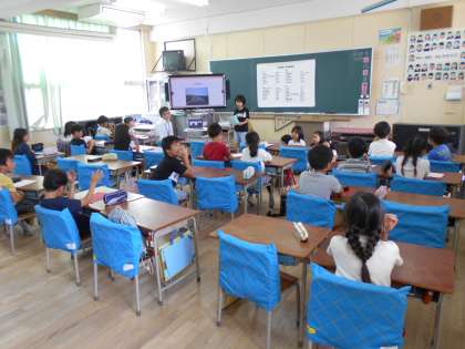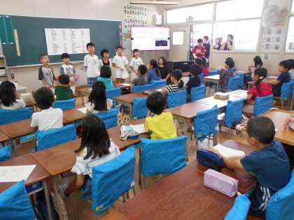 3年生は社会科の「大阪のようすを調べてみよう」の学習の発表をしました。あべのハルカスの展望台から見た大阪市の様子をグループごとに調べ、調べたことを発表しました。
