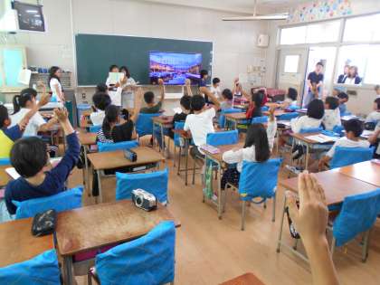 5年生は社会科の学習で「自然条件と人々のくらし」について発表しました。気候や地形などの自然条件とわたしたちの暮らしの関わり方についてグループごとに調べたことを伝えました。自分たちでタブレットを使って、発表資料を作成しました。