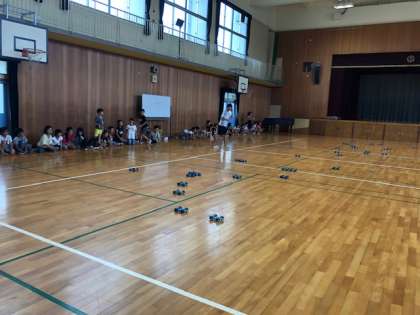 今日、3年生はゴムの力を調べる実験を行いました。ゴムの引き具合や本数を変えて調べました。全員でゴムを放したので子どもたちは声をあげて、楽しみながら変化の違いを学習しました。