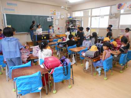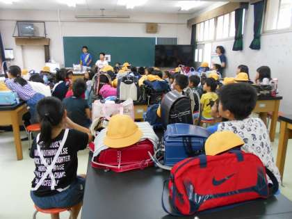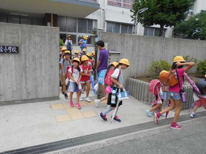 今日の5時間目は地区別子ども会があり、集団下校をしました。子ども会では夏休みの暮らしで気をつけることなどを話し合い、地区の仲間の輪を深めるために楽しいゲームをして過ごしました。