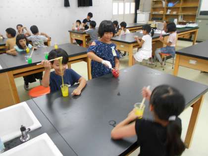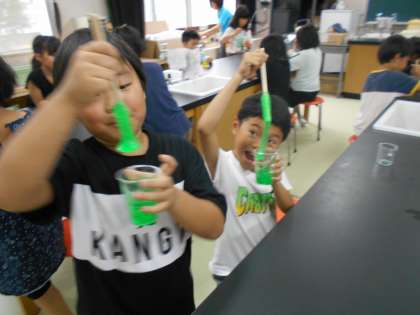 スライム作りに挑戦しました。赤・黄・緑色の中から好きな色を選んで自分だけのスライムが出来上がりました。スライムが伸びる様子を皆で楽しみ、一学期の終わりに楽しい時間を過ごすことができました。