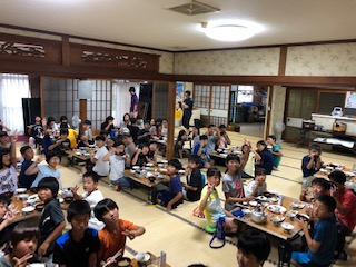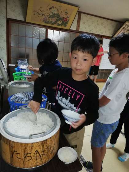 でも、中にはおかわりの列に並んでいる子も。おひつのごはんも空になるのかなぁ。