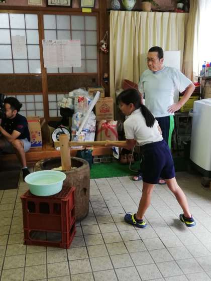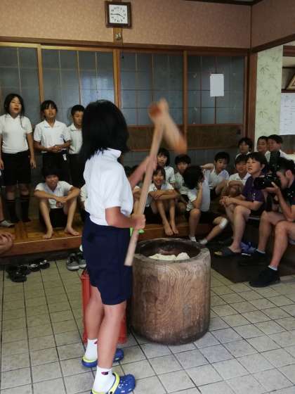 餅つきの様子が送られてきました。2日目の午後は予定を変更して餅つきを行いました。