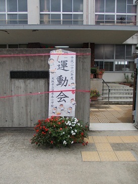 10月5日(日)、台風の影響を受け、時々雨が降るといった判断に困る天候でした。早朝から校門前に並んで待っておられる方もおられ、よりたくさんの方に見ていただきたいという思いもあって、雨天用プログラムで実施することになりました。