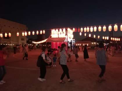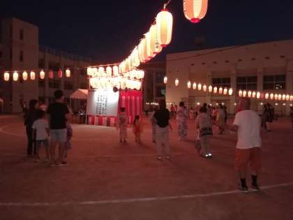 参加者もだんだん増えてきて、盛り上がってきました。大人も子どももいっしょになって楽しく踊っています。もっともっと盛り上がっていきましょう!