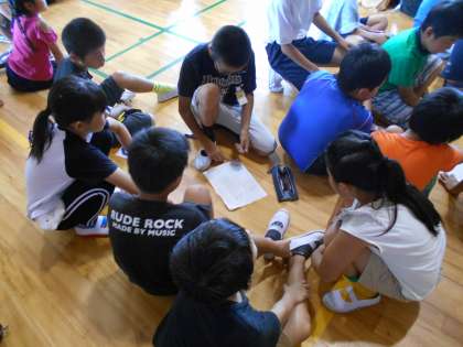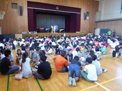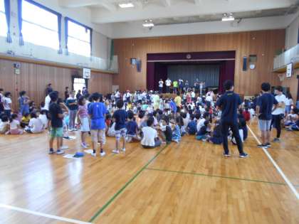 今朝はフレンド集会がありました。今日はヒントをもとに先生当てクイズを行いました。久しぶりに全員で講堂に集まり、楽しいゲーム集会となりました。