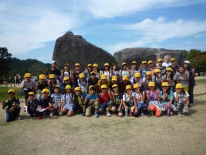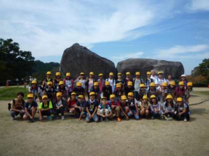 秋の自然を感じながら、グループでの散策です。グループで協力して「猿石」「鬼の雪隠」「亀石」などを巡りながら、石舞台古墳や高松塚古墳を見学しました。1学期に学習した歴史の学習をさらに深めるいい学習になりました。