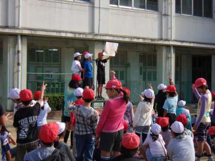 今日の集会は、ゲーム集会でした。集会委員会の人が出すじゃんけんのカードとじゃんけんをして、負けた人は座っていきます。途中からは、あいこの人も座ることになったので、勝ち残る人が少なくなっていきました。10人くらい残った最後のじゃんけんで、4年生が一人勝ち残りました。
