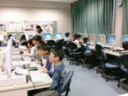 カレンダーづくりやお絵かきなど、パソコンを使って作業をしています。形をつくったり絵をかいたりするのもパソコンを使うので、簡単にできます。4年生もすいすいと使える子がたくさんいます。簡単な学習ゲームなどをしている子もいます。