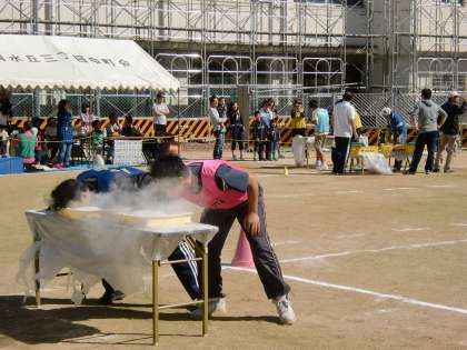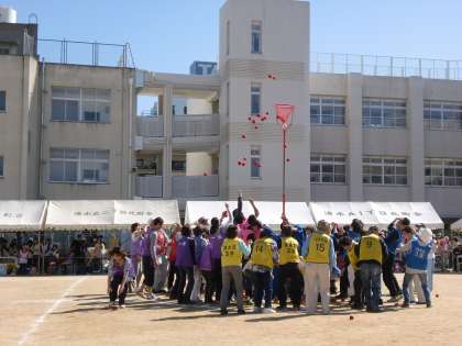 秋晴れのもと、地域の運動が校庭で行われました。各町会ごとの対抗戦で、得点を競います。今年の優勝はどの町会になるでしょうか。