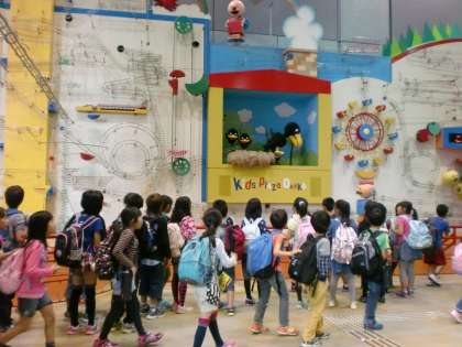 館内では荷物を置いて、グループ行動でした。そんなに混んでいなかったので思いっきり遊ぶことができました。時々グループとはぐれる子がいましたが、ちゃんと待ち合わせポイントで会うようにしていました。グループ行動がしっかりとれていると思いました。