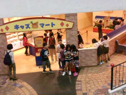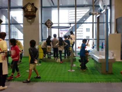 キッズプラザ前の扇町公園で昼食をとりましたが、おやつを食べないうちに雨になったので、また館内に戻りました。