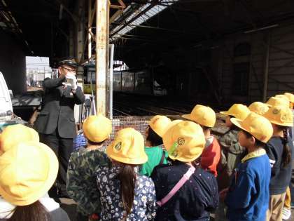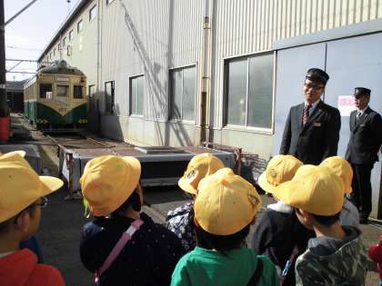 楽しみにしていたあびこ車庫の見学です。天気も幸い雨が上がりいいお天気の中見学に出かけることができました。電車の部品を見せていただいたり、パンダグラフの説明をしていただいたりとたくさん勉強することができました。