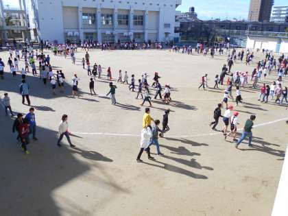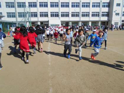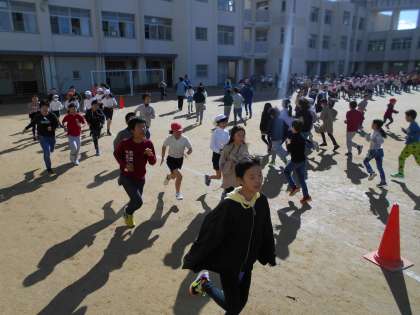 昨日は久しぶりに晴れ間が広がり、15分休みに『耐寒かけ足』が行われました。