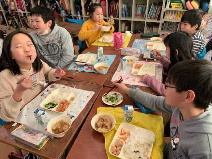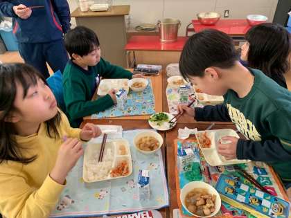 給食の時間に天王寺かぶらを食べました。おいしくいただきました。たくさんできたので、他学年にもおすそわけしました。
