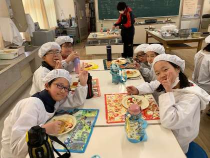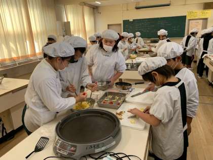 家庭科の調理実習でホットケーキを作りました。ホットケーキミックスと卵と牛乳を混ぜました。