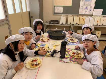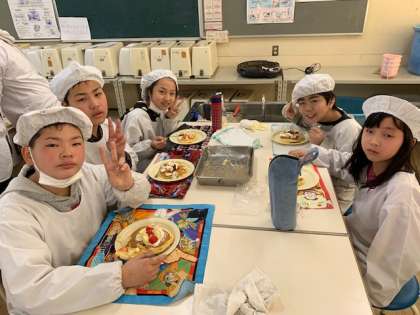 ホットケーキを作っている間にフルーツも切りました。包丁の使い方も上手になってきました。