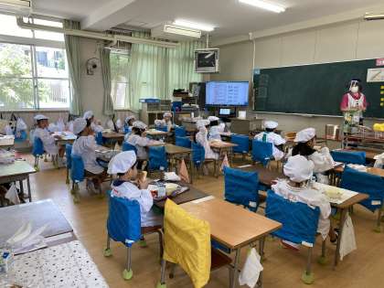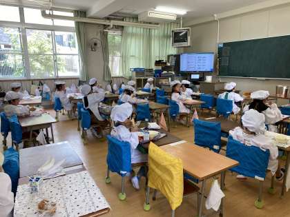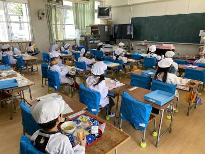 今週から、毎日登校が始まり給食もスタートしました。学校生活にも少しずつ慣れてきました。1年生は、国語は「ひらがな」、算数は「1〜10までの数」を中心に学習しました。休み時間や給食の前には「もうすぐかな?」という声もきこえ、楽しく学校生活を送っています。
