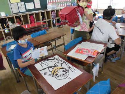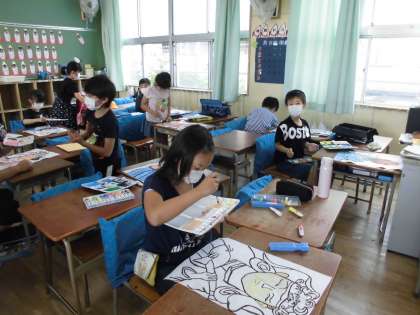 図工科で「七福神」の絵画を描きました。自分たちで好きな神様を選んで願いを込めて描きました。