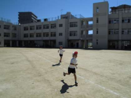 いいお天気に恵まれ、今日は二回目の50メートルをはかりました。暑い中一生懸命に走る姿が見られました。