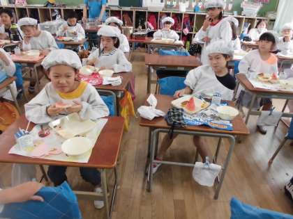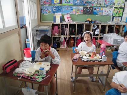 今年初めてスイカが給食で出ました。水分たっぷりでおいしくいただきました。