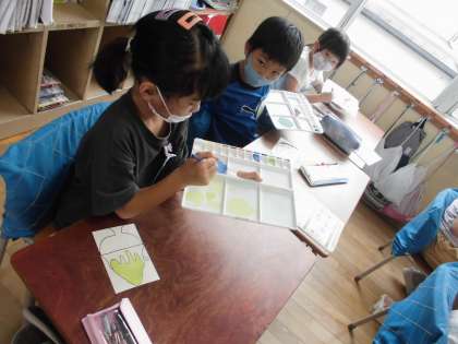 郵便局からかもめーるをいただき、子どもたちは暑中見舞いを書いています。