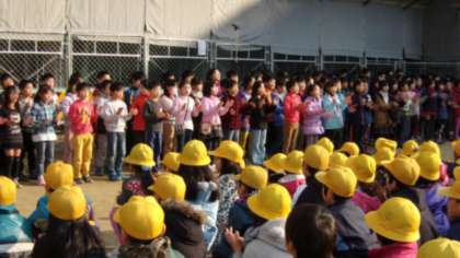 始めに「RPG」の歌とダンス、続いて「かんちがい」の群読でした。約150名の勢いのある歌声が校庭に響きました。群読も、講堂でやっているような感じに声が響いてきました。2学期のしめくくりにふさわしい、いい発表になりました。