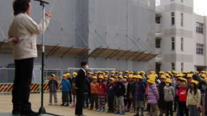 昨日の天気とは打って変わって、比較的穏やかな天気の中、始業式が行われました。子どもたちの引き締まった表情がとてもいい感じに見えました。