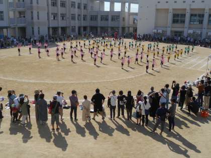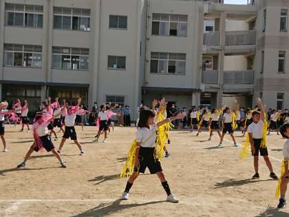 2年生は個人走と団体演技を行いました。「虹を描け!Let's try!!」は、かっこよく踊ることができました。