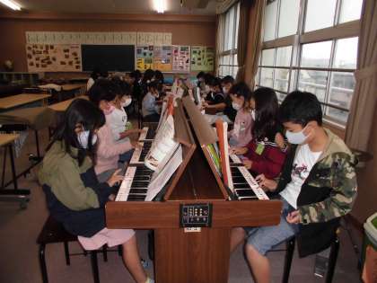 二学期に入って久しぶりに音楽室に行きました。オルガンの練習をしたり、グループで合奏の練習をしました。