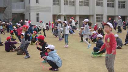 今回の集会は、なわとび集会でした。耐寒なわとびの取り組みはありますが、全校でだれが長く跳べるかを競いました。低学年は前とびで、高学年は後ろとびでというように、条件を変えて跳び続けます。簡単なようで難しかったのか、あっという間に引っかかってしまった子もたくさんいました。
