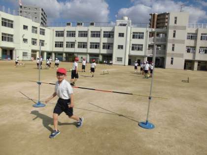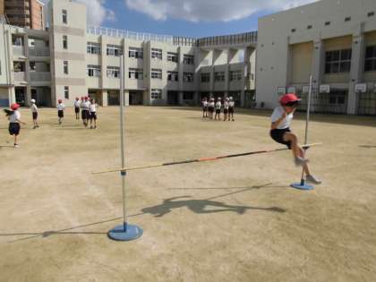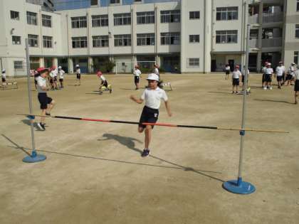 体育の時間に高跳びの練習をしました。はじめは、怖さが先に立ちなかなか思い切って跳ぶことができなかったのですが、練習するにつれてだんだんと跳ぶことができるようになってきました。
