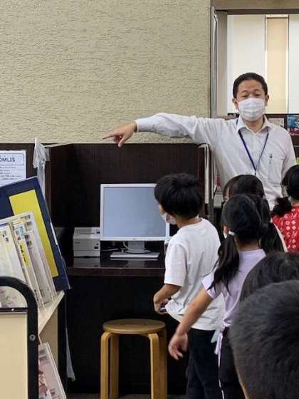 今日は2年1組が図書館見学と町たんけんへ行きました。子どもたちは待ちに待った校外学習だったようで、楽しく見学して学習を深めることができました。