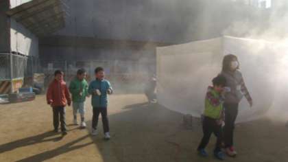 煙ハウスでは、中が煙だらけで出るのがたいへんでした。ハンカチを口に当てていても咳が出る感じがしました。