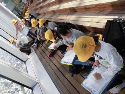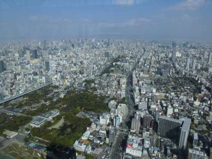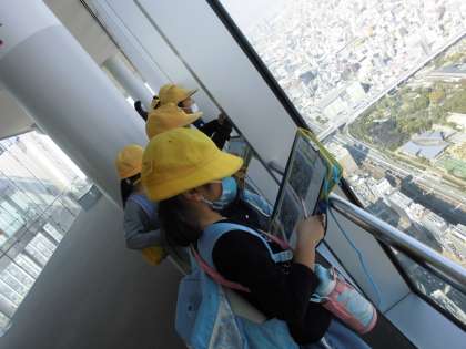 青空の下60階にエレベーターで昇り、東西南北大阪の街を見渡しました。