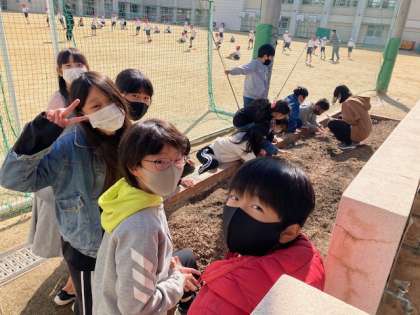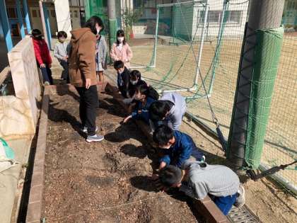 5年生では郷土野菜を育てています。秋になり勝間南瓜の収穫が終わり、現在は天王寺蕪の種まきをしています。大きく育って欲しいですね♪