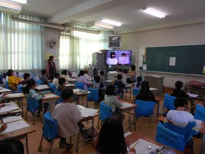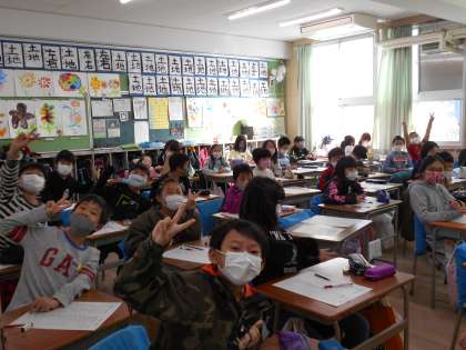 各学級で2問ずつ出し合って、オンラインクイズをしました。クイズは放送室から出していきました。様々な工夫した問題があって楽しかったです。全問正解の児童が2名いました!