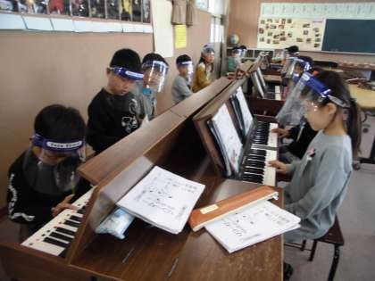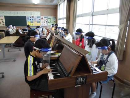 ドレミの運指の練習をしています。指またぎ、指くぐりを練習しました。