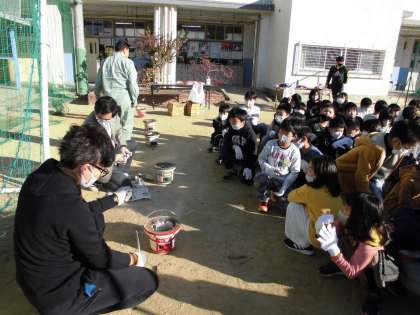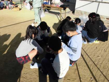 七輪での体験をしました。管理作業員さん、保健の先生、校長先生、原田先生とたくさんの先生にお手伝いいただきました。ありがとうございました。