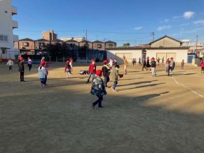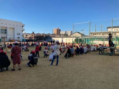 今朝は1・3・6年のフレンド集会がありました。鬼ごっこをしましたが、見事に逃げ切った子どももいました。