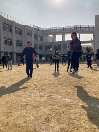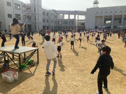 今日は1・3・6年のなわとび週間でした。音楽に合わせてなわとびをしています。自由な跳び方になると、高学年は難しい技に挑戦していました。