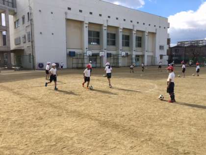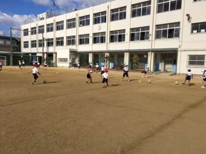 ボールけり遊びをしています
