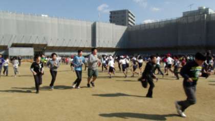 子どもたちが楽しそうに仲よく走る姿や、友だちと競って走る姿は、なかなかいいものです。先生に負けないように一生懸命に走る気持ちもうれしいですね。