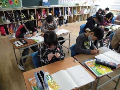 理科の学習では、じしゃくを使い、鉄のくぎをこすって実験を行いました。