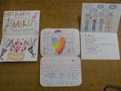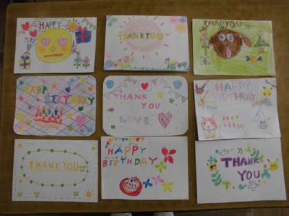 英語で形の学習をし、グリーティングカードを作りました。思い思いの気持ちを込めてカード作りました。